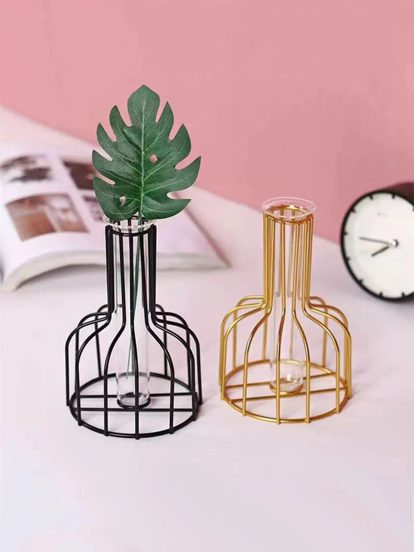 Hydroponic Vase with Iron Decor: Creative Living Room Flower Arrangement