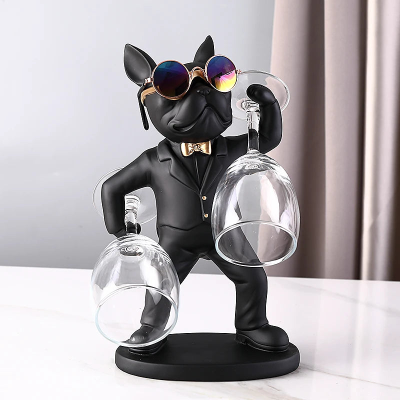 KungFu Bulldog Butler Creative Wine Glass Holders Resin Dog statue Wine Glass Rack Stand for Table Desk Décor for Kitchen Bar